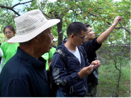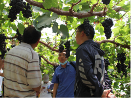 蔚县长宁乡安庄是杏扁主产区,也是蔚县杏扁主栽品种‘优一’母树的所在地,实践团现场考察了当地杏扁种植基地情况,发现杏扁种植管理相当粗放、栽培管理技术比较落后、病虫害现象十分普遍。青年教师张卿针对出现的树体管理和病虫害问题,现场展开教学和技术指导,为当地果农分析杏扁种植过程出现的问题,并提供了解决的措施。实践团还深入葡萄种植户交流设施葡萄栽培管理技术,并为员工教授葡萄种植、嫁接、修剪等技术。