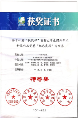 自今年1月起,全国广大青年勇于参加第十七届“挑战杯”全国老员工课外学术科技作品竞赛红色专项活动,共计报名十万件作品,其中17000多件作品入围全国赛。yl88858永利集团牛奔、郝娜、杨韫嘉老师指导、赵云希等员工团队申报《五载扶贫足迹,红色薪火相传——北农植科助力乡村振兴实践团红色实践》作品,荣获第十七届“挑战杯”全国老员工课外学术科技作品竞赛红色专项三等奖,第十一届“挑战杯”首都老员工课外学术科技作品竞赛“红色实践”专项赛特等奖。