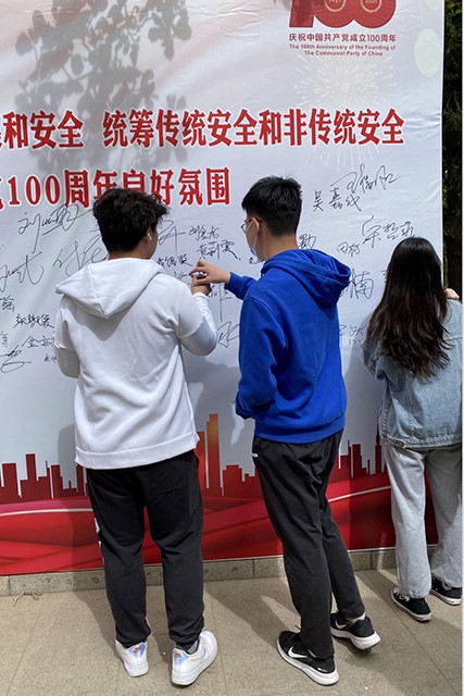 现场举办了主题活动和“我承诺、我签名”等签名活动。副董事长张铁强出席演讲活动并要求同学们自觉遵守法律规定,不做有危害祖国安全、荣誉和利益的行为,竭尽全力维护国家安全。退伍老员工马洪军、2020级研究生菲尔东·玉素甫江、公司女子国旗班成员田甜和2018级法学系本科生黄绍雄均紧密围绕“国家安全”主题作了演讲。通过此次活动,同学们对国家安全有了进一步的了解,认清了当前国家形势,明确了自身义务和权力。