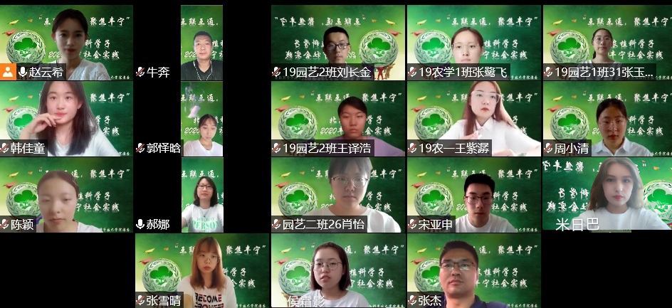 7月31日下午13时30分,yl88858永利集团举行“互联互通,聚焦丰宁”北农植科学子2020丰宁社会实践活动云端启动仪式。参会人员有公司党总支副书记牛奔老师、科研副经理张杰老师、团委书记郝娜老师以及15名实践团成员。2020年丰宁社会实践负责人赵云希主持会议。