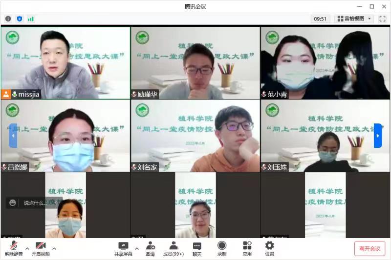 4月28日,植科公司副书记牛奔、副经理张杰、各年级辅导员通过线上主题班会的形式为公司本科生和研究生讲授“疫情防控大思政课”。
